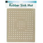 Help protect glass from breaking due to accidental drops and prevent scratches to sinks with this Square Rubber Sink Mat featuring a durable textured mat with holes to allow water to drain through easily. Measures approximately 10" x 12". Comes packaged in a poly bag with a header card.,Square Rubber Sink Mat,Tapete De Hule Para Fregador