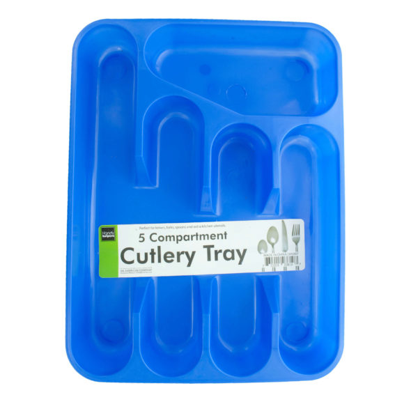 A kitchen essential, this Plastic Cutlery Tray features five different sections for all storage needs. Comes in assorted colors. Measures approximately 9 3/4" x 12 3/4". Comes loose.,Five Section Plastic Cutlery Tray,Organizador De Cubiertos