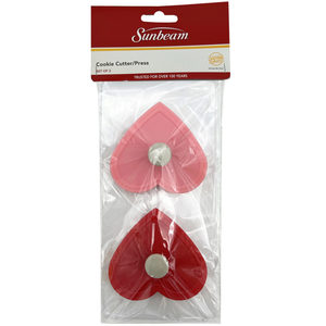 Create perfectly shaped cookies with this set of 2 Cookie Press Cutters. Push the cutter down and use the spring-action press to emboss the shape of the press onto the dough. These time-saving baking accessories are great to have on hand to decorate cookies, pie crust, gingerbread cookies, pastry, and biscuit dough. Each pack comes with 2 cutter presses. The assortment includes hearts, teddy bear/gingerbread man, and a spring set. Great for holiday baking, party treats, and school fundraisers. The set comes packaged inside a hanging poly bag with a header card.,Sunbeam Set of 2 Cookie Presses in Assorted Designs,